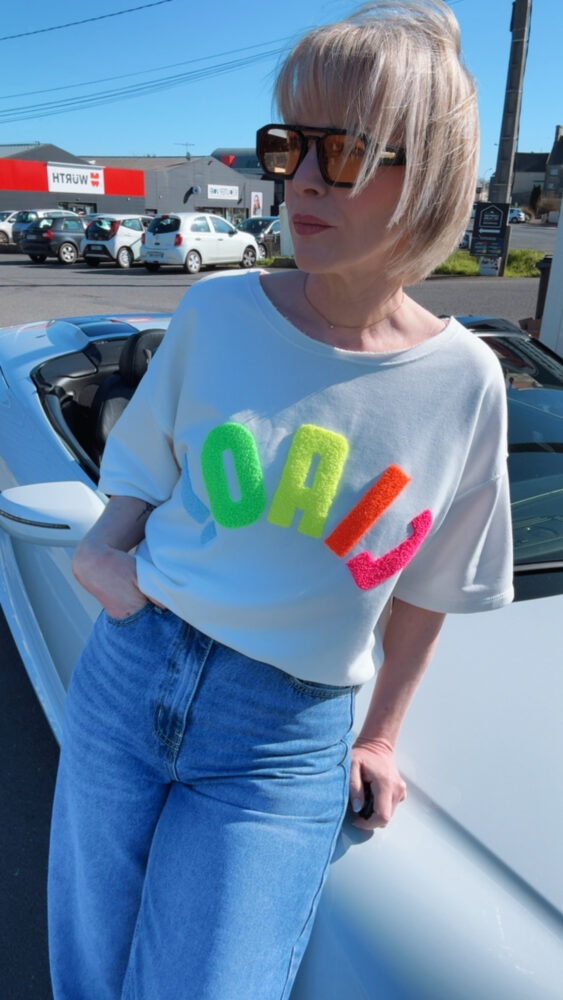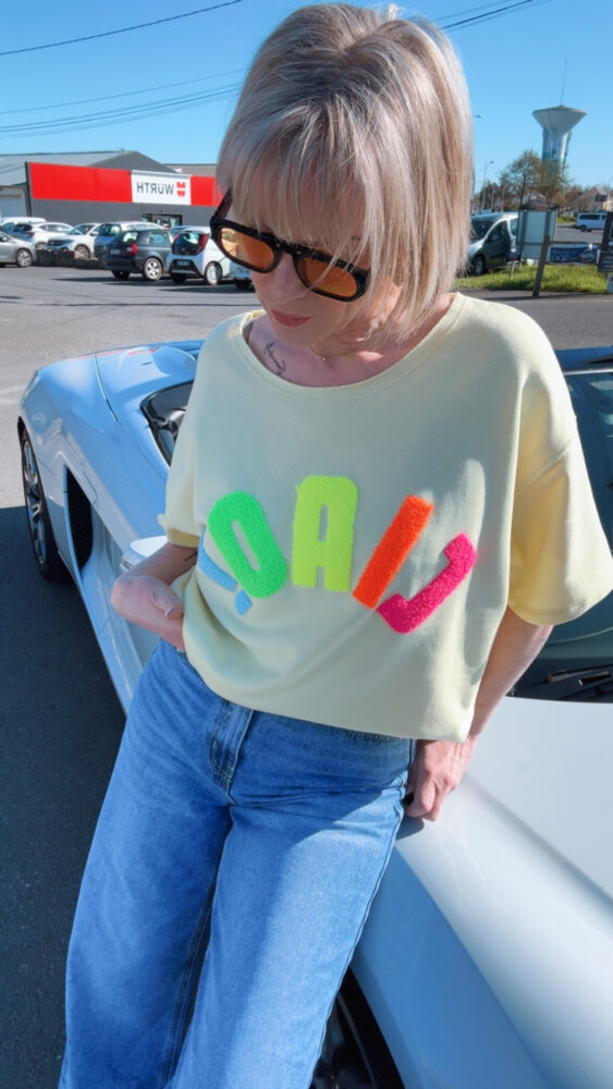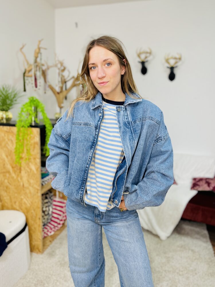 Stéphanie porte le modèle en taille unique, pour son 38.